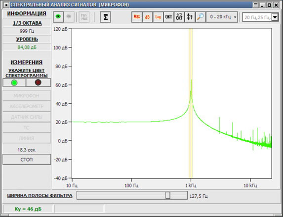 Программный модуль «СПЕКТРАЛЬНЫЙ АНАЛИЗ СИГНАЛОВ» предназначен для детального анализа акустических, виброакустических и низкочастотных электрических сигналов от датчиков, подключаемых к входам анализатора комплекса - измерительного микрофона, акселерометра, токосъемника, гальванического контакта. |